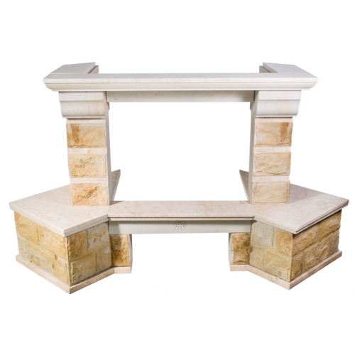 - Материал: колотый песчаник, золотистый или белый цвет, полки и балка - мрамор Best CreamПодходящие топки шириной „700 мм” с прямым стеклом