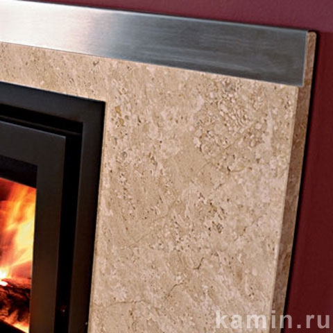 обрамление из тигрового восточного мрамора со вставками из нержавеющей стали.