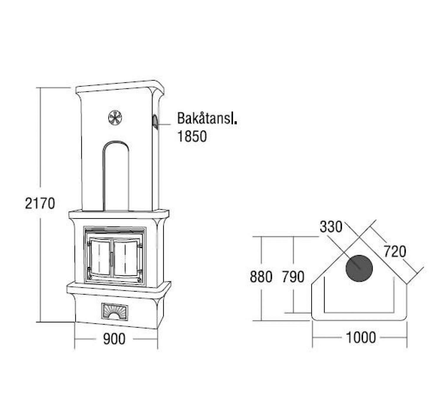 - Выход для дымохода сверху или сзади