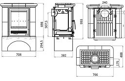 Oliwia/T - каминная топка из чугуна, выдерживающего высокотемпературный режим. Изготовлена компанией KRATKI (Польша). Необычный дизайн (двустороннее сквозное остекление) позволяет использовать ее в островных каминах или печах, отапливающих две комнаты. Корпус покрыт сетью дополнительных ребер, увеличивающих полезную площадь теплоотдачи. Каминное топливо - сухие дрова. Материал окон - термостойкая стеклокерамика, с температурным порогом в 800 градусов Цельсия. Дверца топки открывается вбок.