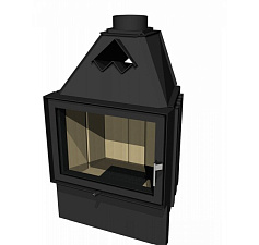 Печь с фронтальной и боковой дверцами, имеет систему Чистое стекло, ручка дверцы не нагревается в процессе топки. Печь покрыта эмалью, цвет - синий.