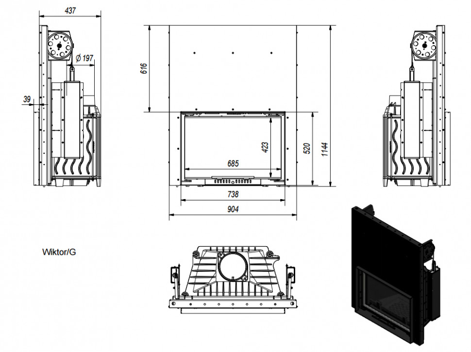 Wiktor/G (гильотина) – серия чугунных топок от Kratki мощностью 14 кВт. Топка с уникальной конструкцией дверного механизма, позволяющего поднимать дверцу вертикально вверх. Камин с топочной камерой Wiktor/G – это возможность совестить преимущества открытого и закрытого каминов.